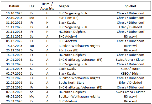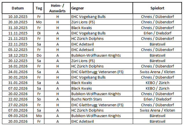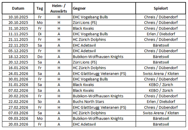 Spielplan Meisterschaft 2025-26